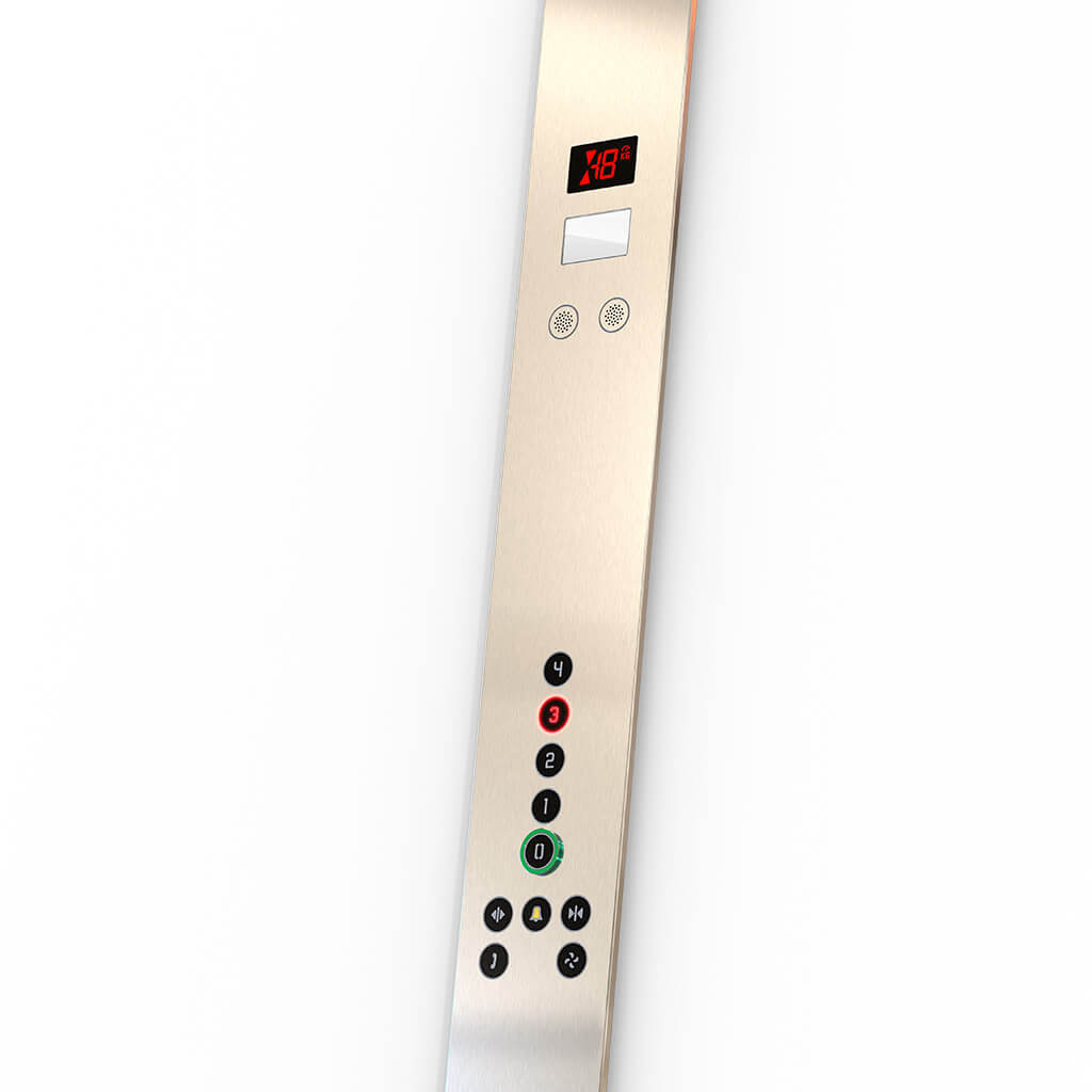 AVOX half & full height car operator panels with DSC floor indicators which is simple and cost effective solution for all parallel type elevator controllers. Direct LED inputs will result to show respecting floor position information with using 7 segment mapped digits. Special letters like G P L R B can be shown if your elevator controller is capable to giveout respecting outputs. Separate arrow shaped illuminated symbols can indicate travelling direction. Maintenance and overload situations can also be shown with using illuminated symbols.