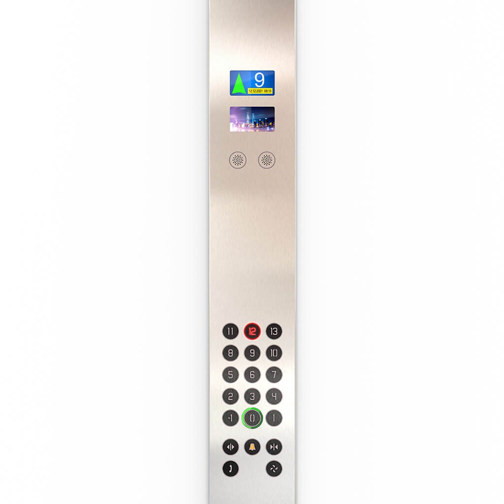 AVOX half & full height car operator panels with dual 4.3″ full color TFT floor position and information panels for elevator controllers which uses serial (CANBUS) communication. Simple plug and play connection structure needs no time to spend on electrical and mechanical installation. CKS keyboard modules are connected to CT4D. Lower TFT screen can be useful to show extra information respecting current floor position in graphics and text. Customer can change these images with using SDCARD and given PC software.