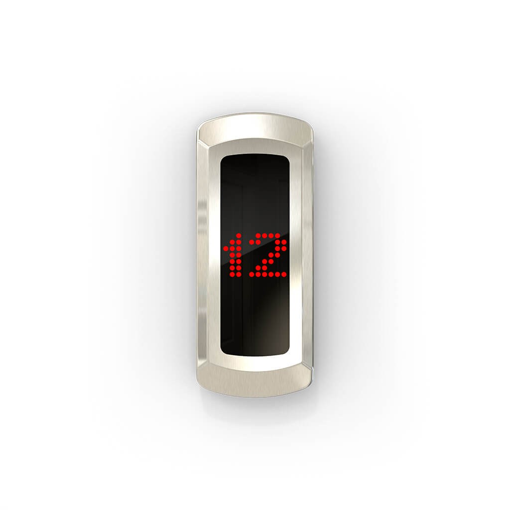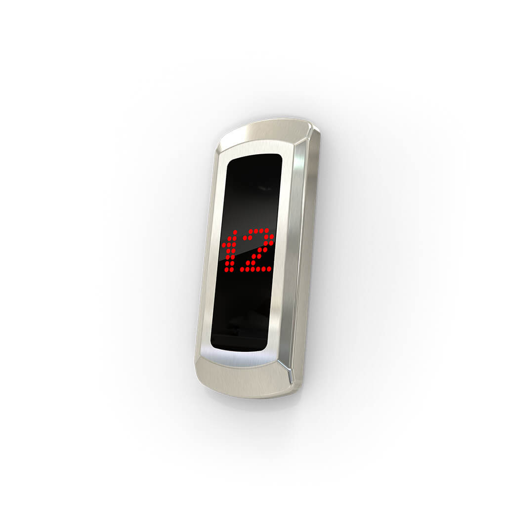 ARENA – premium surface mounted landing operator panels. Strong frame, glass medium section that adds modern contrast to steel frame, beveled corners and no visible screws are outstanding in design. Compatible with LCD , 7 Segment & LED matrix indicators and R36 round buttons are used in ARENA landing operator panels.