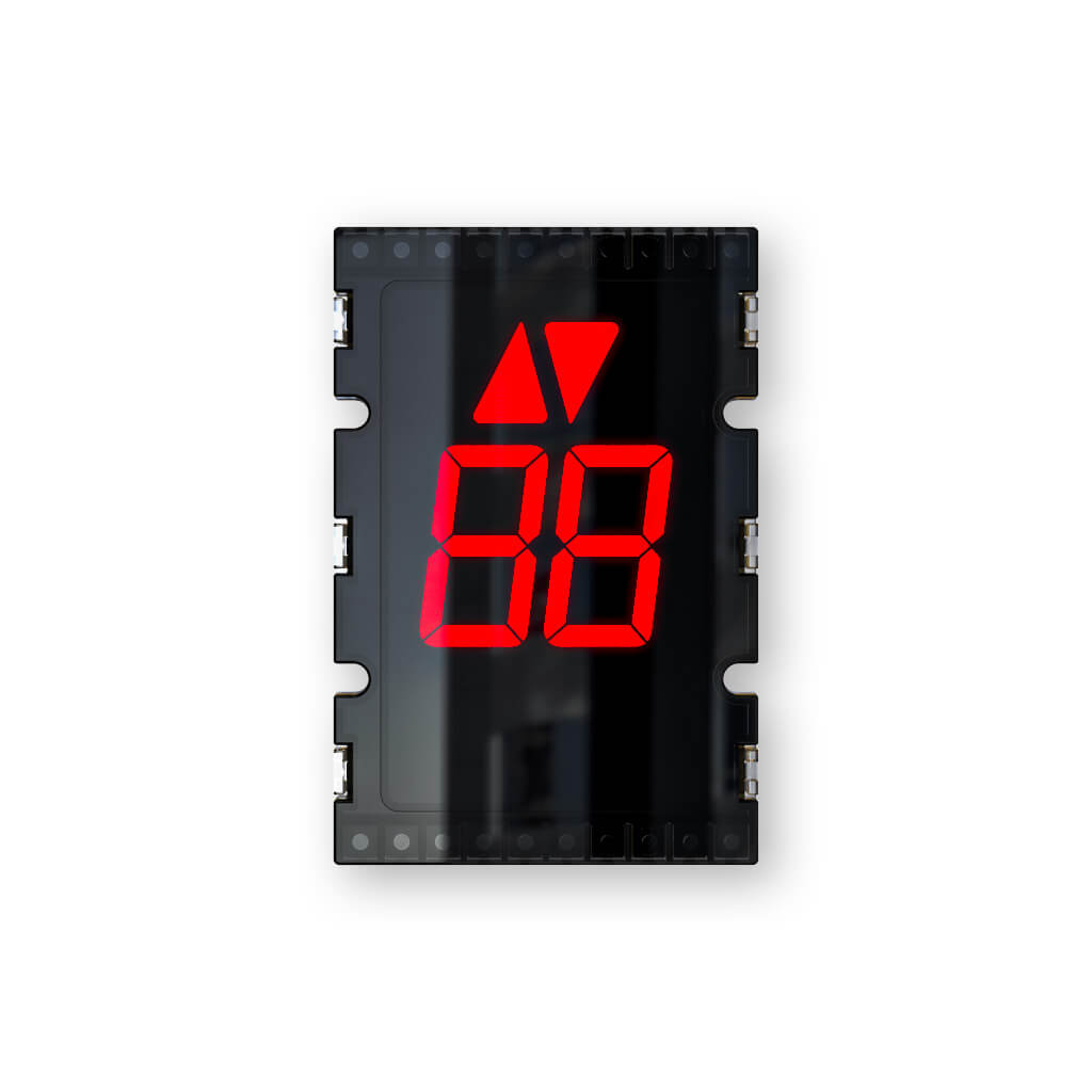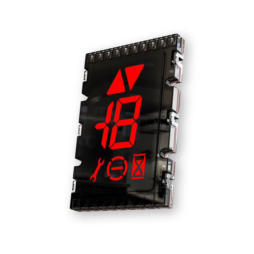 DSC floor position indicators which is simple and cost effective solution for all parallel type elevator controllers. Direct LED inputs will result to show respecting floor position information with using 7 segment mapped digits. Special letters like G P L R B can be shown if your elevator controller is capable to giveout respecting outputs. Separate arrow shaped illuminated symbols can indicate travelling direction. Maintenance and overload situations can also be shown with using illuminated symbols.