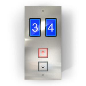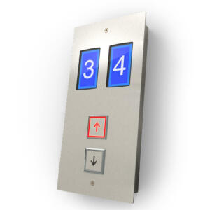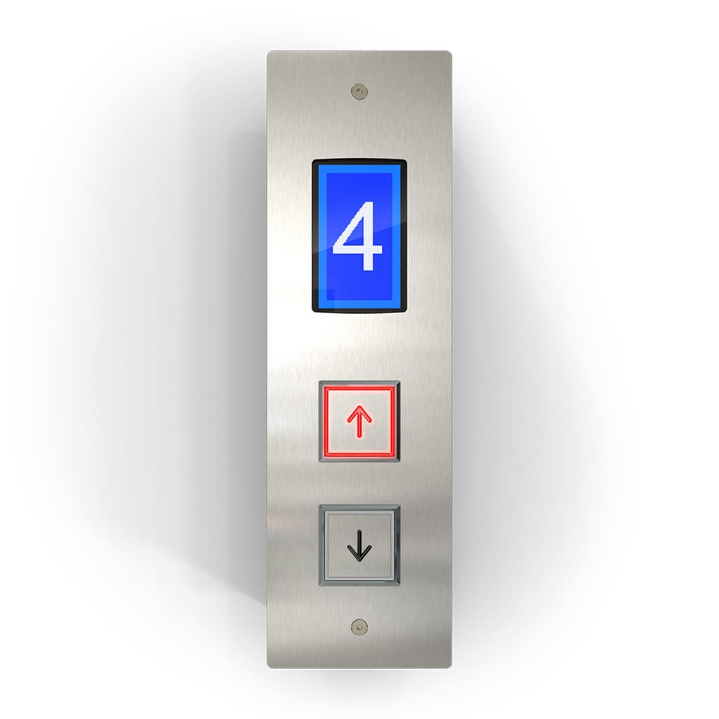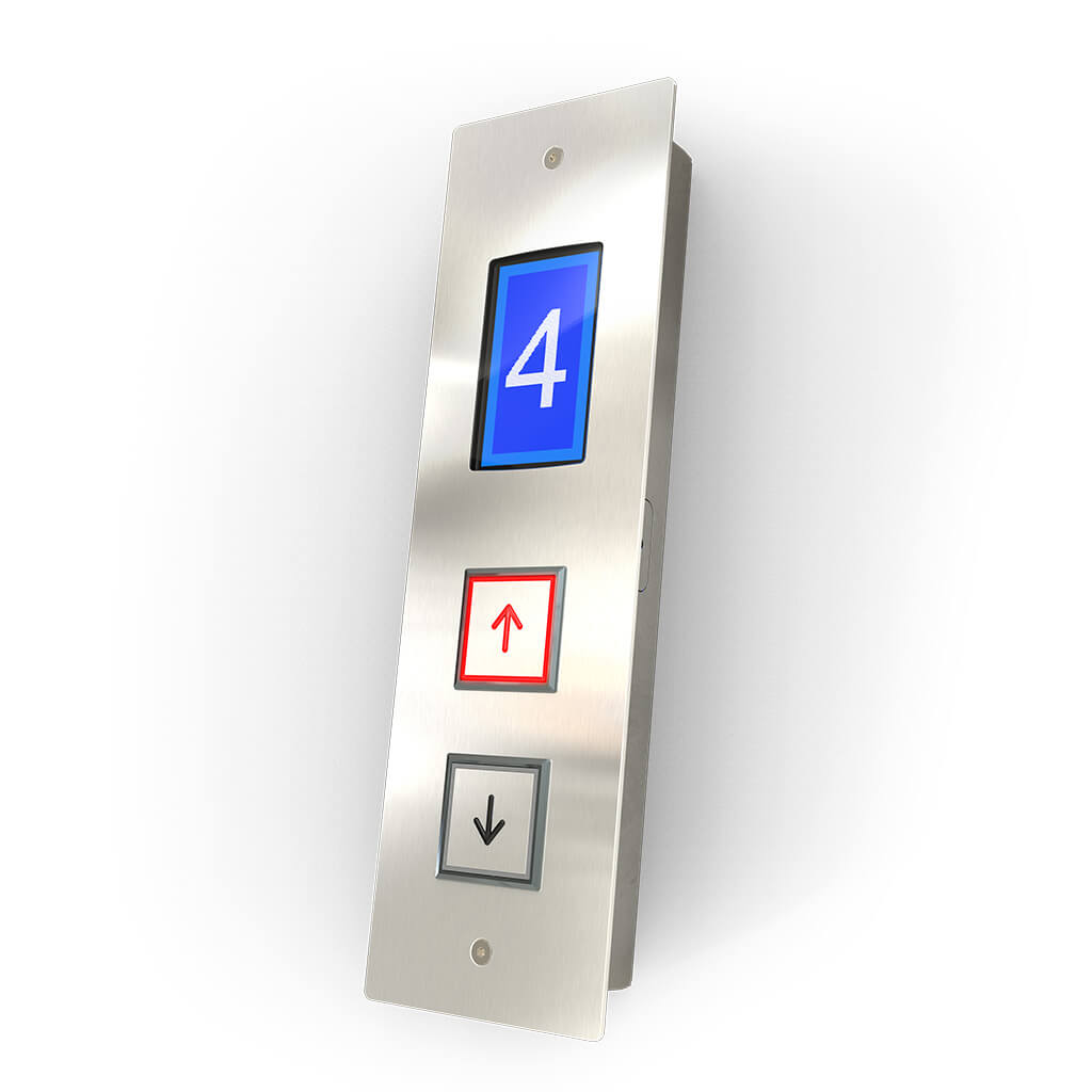 EC – scalable flush mounted landing operator panels. 2 mm thick flat front panel make it look thin on the wall. All the electronic components are well organised and safely hidden inside the backbox. Compatible with 7 Segment & LED matrix and LCD indicators. QUAD series premium quality push buttons are used. User-friendly structure ensures reliable installation for wide range of elevator applications.