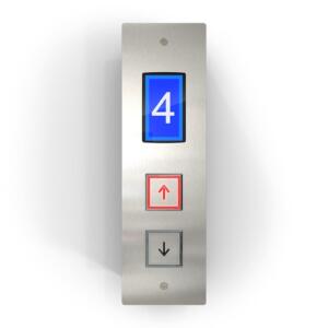 EC – scalable flush mounted landing operator panels. 2 mm thick flat front panel make it look thin on the wall. All the electronic components are well organised and safely hidden inside the backbox. Compatible with 7 Segment & LED matrix and LCD indicators. QUAD series premium quality push buttons are used. User-friendly structure ensures reliable installation for wide range of elevator applications.