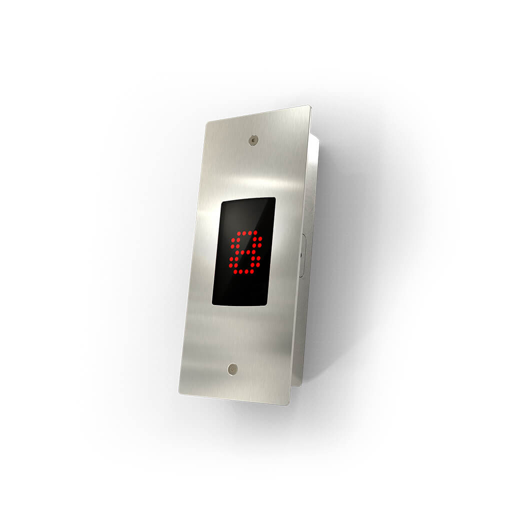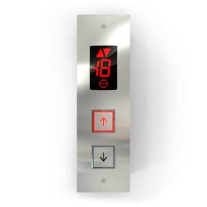 EC – scalable flush mounted landing operator panels. 2 mm thick flat front panel make it look thin on the wall. All the electronic components are well organised and safely hidden inside the backbox. Compatible with 7 Segment & LED matrix and LCD indicators. QUAD series premium quality push buttons are used. User-friendly structure ensures reliable installation for wide range of elevator applications.