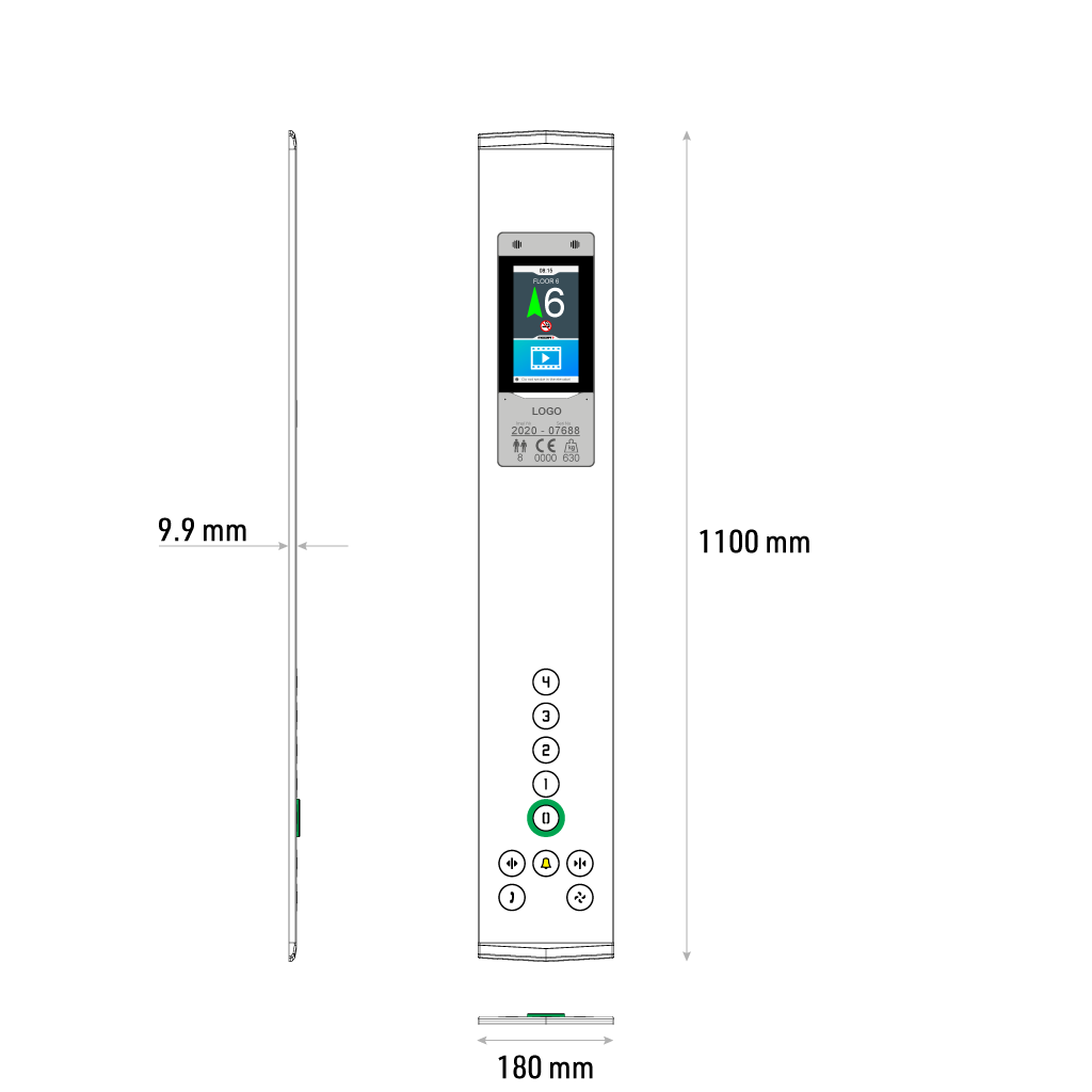 MEGA7 bütünleşik kat konum ve durum göstergesi kullanan AVOX kabin kat kasetleri, 7" renkli TFT göstergesi ile CANBUS seri tesisat hazır bağlantıyı desteklemektedir.