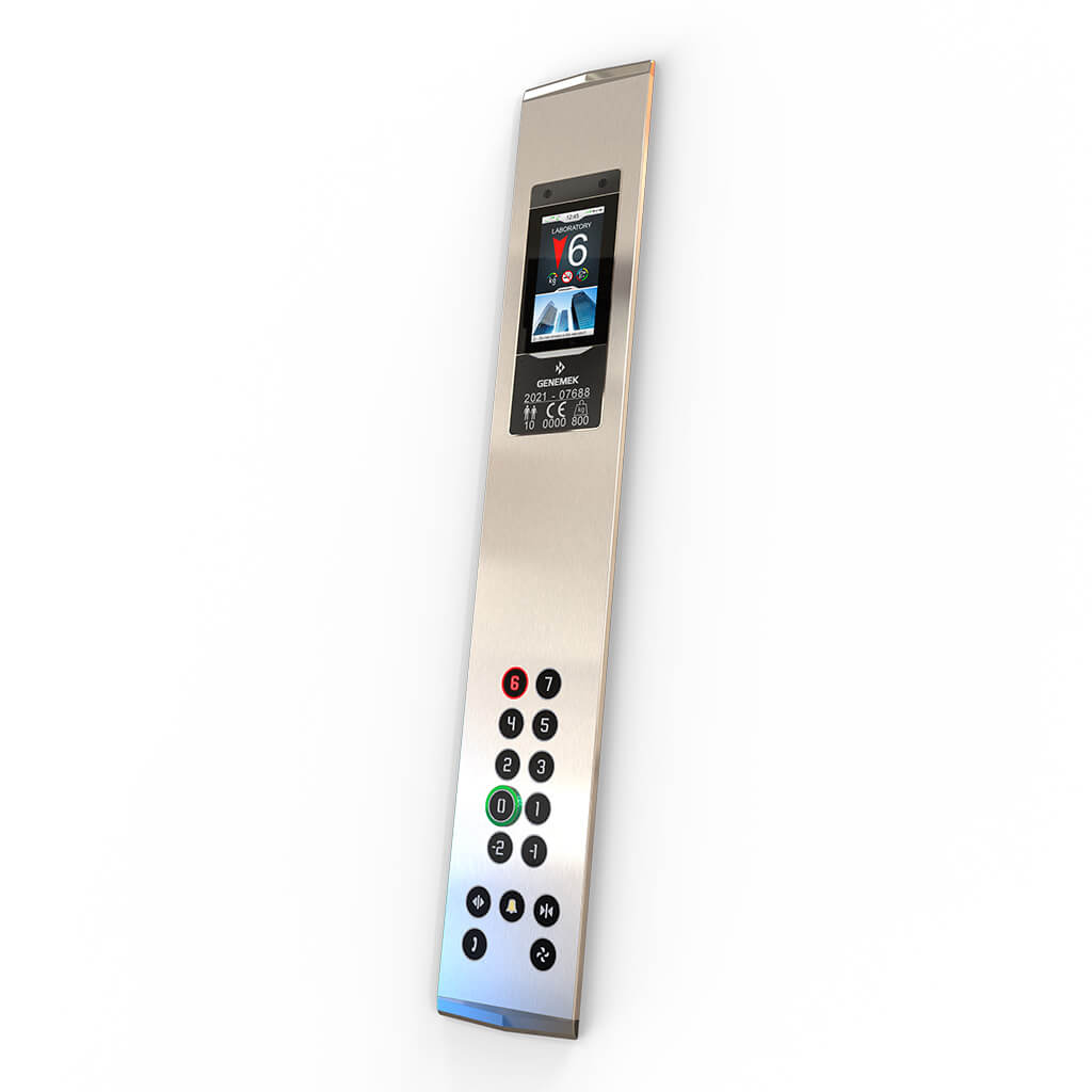 MEGA7 bütünleşik kat konum ve durum göstergesi kullanan AVOX kabin kat kasetleri, 7" renkli TFT göstergesi ile CANBUS seri tesisat hazır bağlantıyı desteklemektedir.