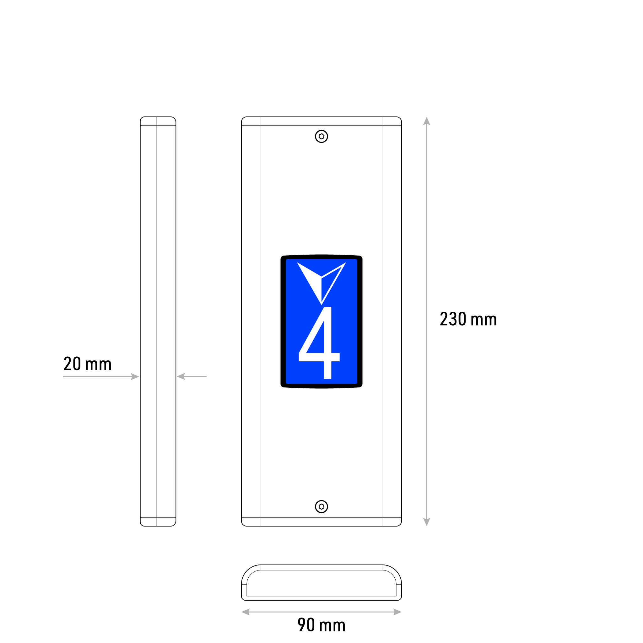 MONO – ölçüsü değişebilir sıva üstü kat kasetleri. Hem yatay hem dikey ölçülerin en ve boyları ihtiyaca göre düzenlenebilir. Yuvarlak kıvrımlı kenar tasarımı asansör holü mimarisinde daha ince ve şık görünmesini sağlar. 7 Segment & Dotmatris LED gösterge ile LCD göstergeler ile uyumludur. QUAD birinci sınıf kalite butonların kullanıldığı esnek ve sağlam tasarım pek çok farklı türde asansör uygulamasında kullanılabilir.
