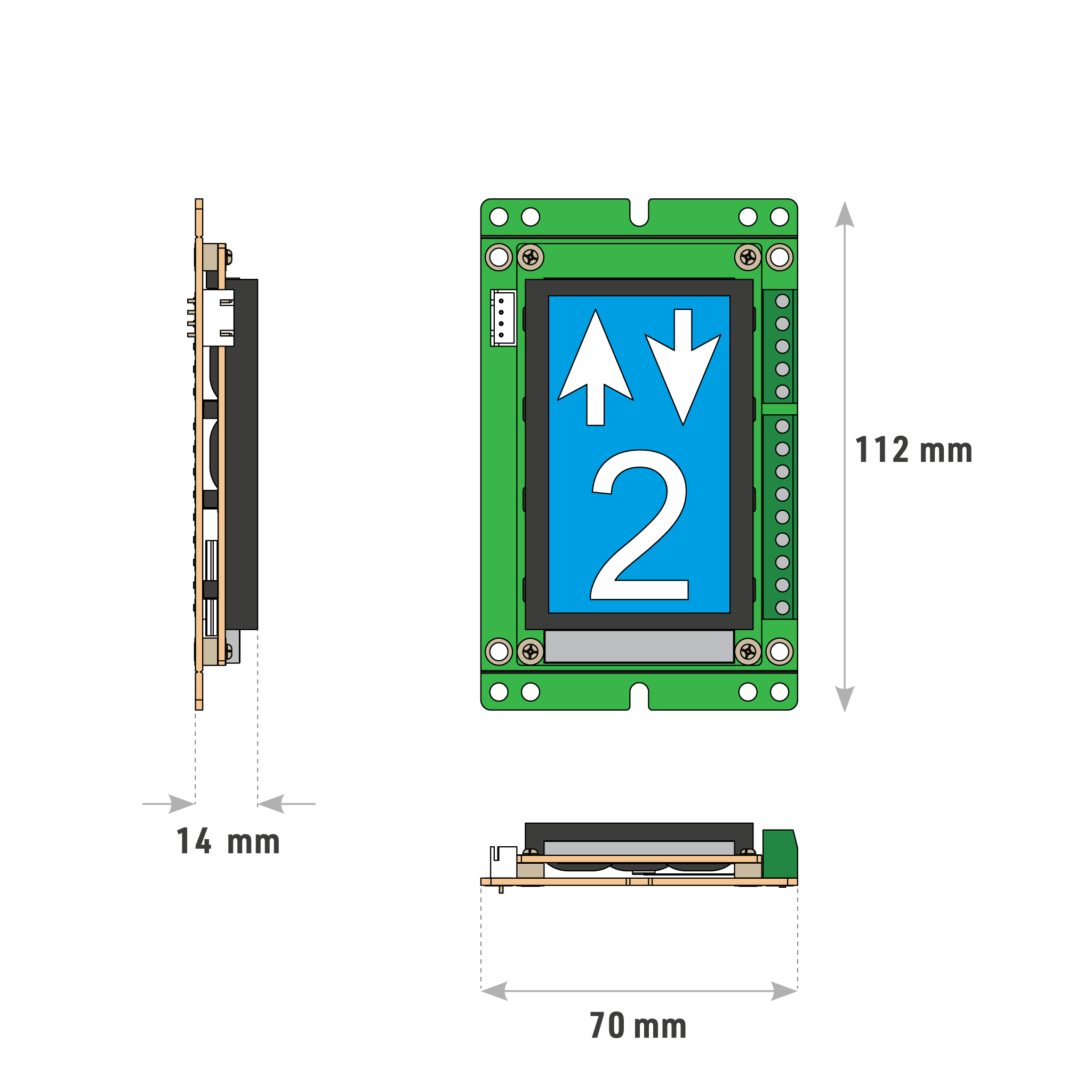 ▪ Display size 70x40mm, whole unit size 112x70x14mm